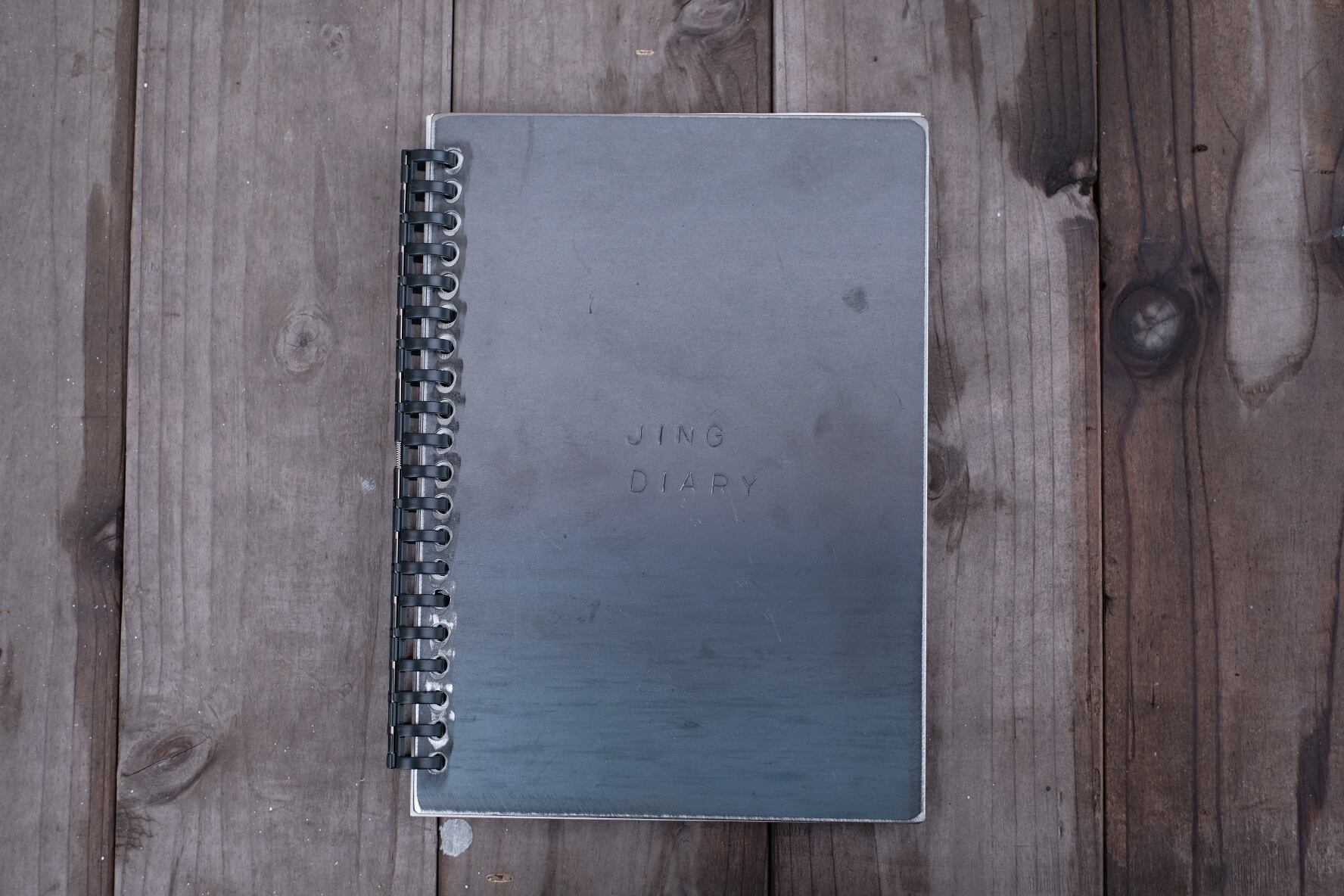 無印良品のリフィルノートA5のサイズに合わせたアイアン製のブックカバーです。